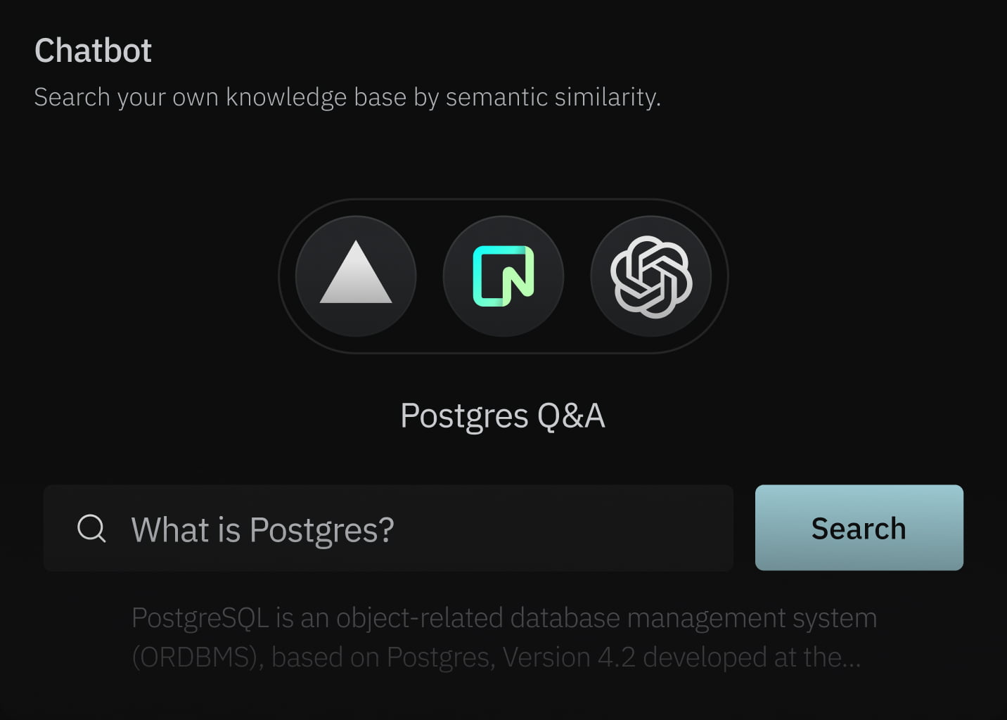 - AI- Vercel Postgres pgvector starter- A Next.js template that uses Vercel Postgres as the database, pgvector for vector similarity search + OpenAI's text embedding models.